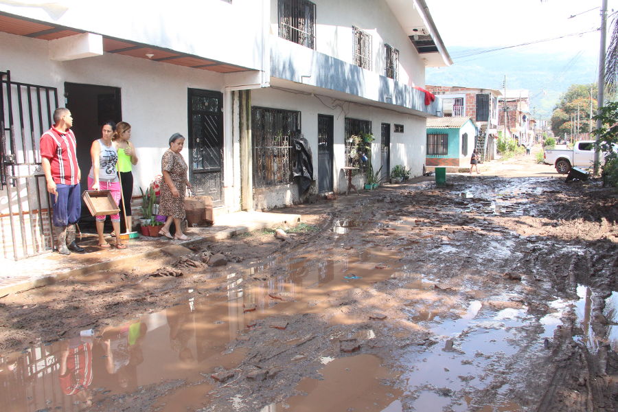 La imagen izquierda muestra como estaba la calle 25 que se vio afectada por la creciente de la quebrada Rapao que pasa por el municipio. En la imagen derecha se ve el estado actual de la calle 25.
