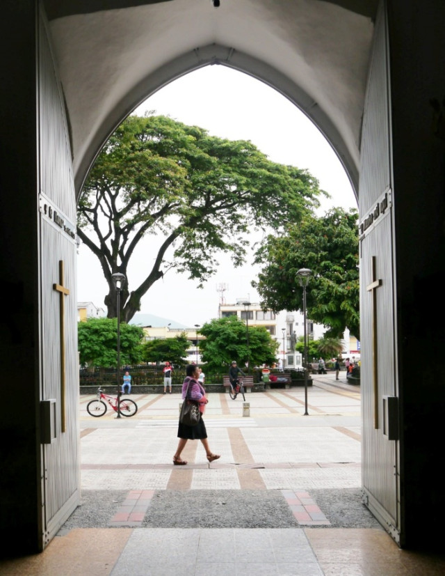 En Caldas hay puertas santas. Esta corresponde a la Catedral Basílica Metropolitana Nuestra Señora del Rosario de Manizales, que muestra la historia de la parroquia, la misa, la predicación y la procesión.