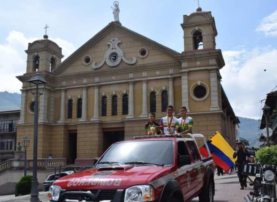 Fotos | Cortesía Alcaldía de Pácora | LA PATRIA Los ciclistas pacoreños en carro de Bomberos recorren el municipio y los reconocen por sus logros.