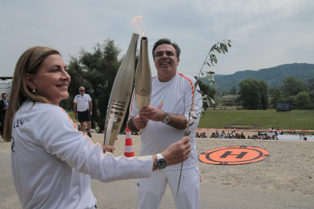 El acto había comenzado con el izado de las banderas olímpica, francesa y griega, seguido de sendos discursos del alcalde de Olimpia y los presidentes de los comités olímpicos internacional, galo y heleno.