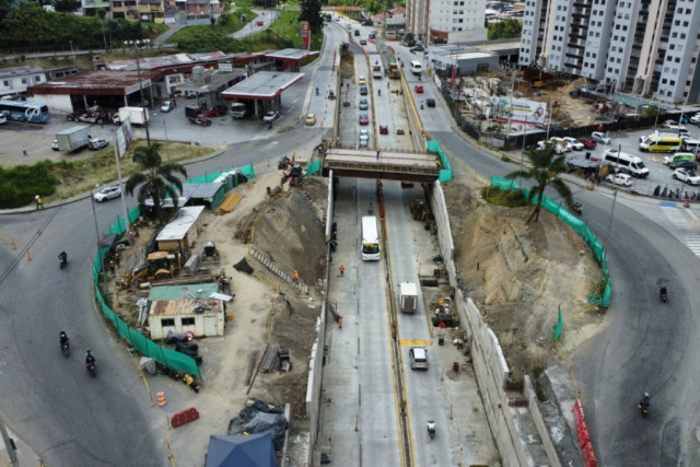 A finales del mes pasado se habilitaron dos carriles del deprimido vial, uno en el sentido Estación Uribe - La Enea y el otro en el sentido contrario, y ahora se avanza en la construcción de los puentes y la nueva glorieta que estará por encima del deprimido vial. La meta es concluir todo el proyecto en marzo. El actual avance de obra es del 85%.