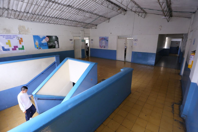 "El aula máxima la vamos a tener que usar como salón, no nos está dando el espacio para cubrir el servicio educativo. No podemos hacer la clase de educación física en la cancha central, por no interrumpir lo que hacen en los salones de al lado".