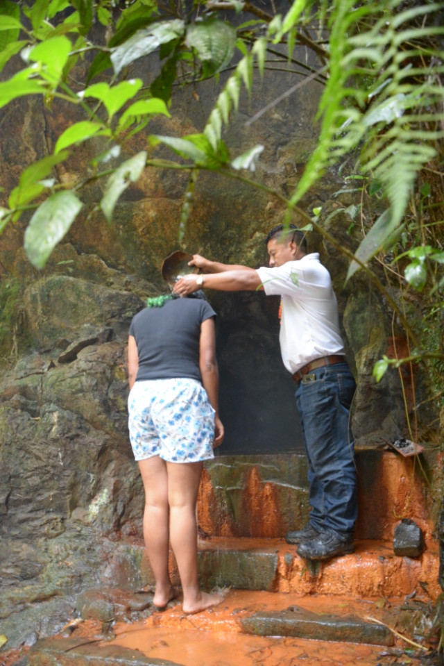 Aguas Saladas tiene una cascada cristalina. Su vecino es un chorro de agua salada. Allí los indígenas reciben un baño del médico Alexander para llenar sus espíritus de energía buena, de armonía de los cuerpos humanos con los elementales de la naturaleza. El médico señala con el dedo, en orden, los cerros Buenos Aires, Viringo y San José. “Estamos blindados —dice Alexander—. El Buenos Aires nos protege, por él no han vuelto los conflictos y ningún grupo armado”. El blindaje energético del resguardo lo complementan la desembocadura donde se encuentran los ríos Aguas Claras y Las Estancias.