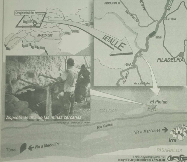 LA PATRIA reportó esta tragedia en su edición del 28 de marzo de ese año. "Las paredes del socavón se vinieron encima. Napo quedó atrapado, el resto salimos”, relató Óscar Fernando Castro Ladino, un sobreviviente de ese alud en la mina La Rampa.