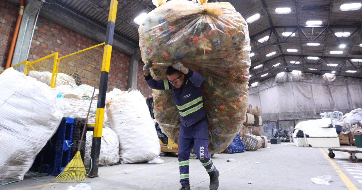 Las bolsas que los operarios de Emas by Veolia usan para recoger la basura están hechas del plástico que es recuperado. En promedio se hacen 119 mil bolsas al mes.