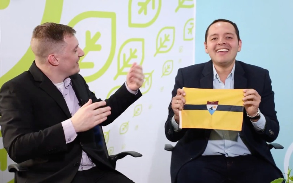 Randy Thompson, de Liberland, y el alcalde de Manizales, Carlos Mario Marín.
