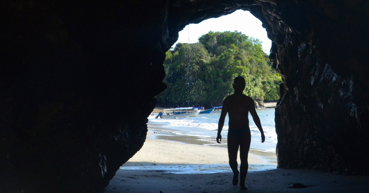 Playa Juan de Dios, ubicada en Bahía Málaga rodeada de acantilados y selva.