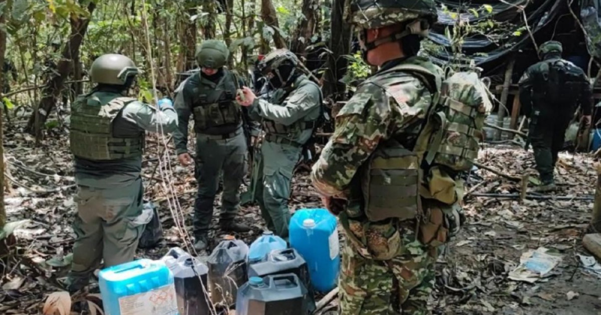 Allí también se incautaron 2.560 galones de insumos líquidos, sólidos, maquinaria y equipos para la producción de cocaína para los 'Comandos de la Frontera', detalló el comandante del Batallón de Operaciones Terrestres N.47, teniente coronel Luis Carlos Ramírez.