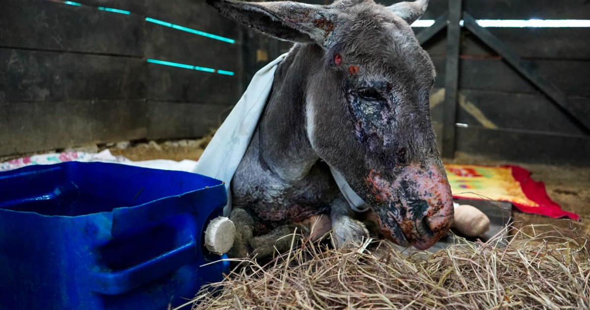 El burro Medina, que resultó herido durante los recientes incendios forestales en Coyaima (Tolima), sigue en recuperación.