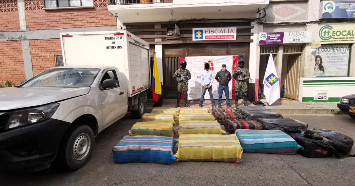 Al revisar su contenido, los funcionarios hallaron 15 bultos que contenían 702 kilogramos de marihuana tipo creepy. El conductor confesó que hacía parte de la estructura Dagoberto Ramos Ortiz, de la disidencias de las Farc, que delinque en Miranda, Toribío y Caloto, en Cauca, de donde provenía la droga.